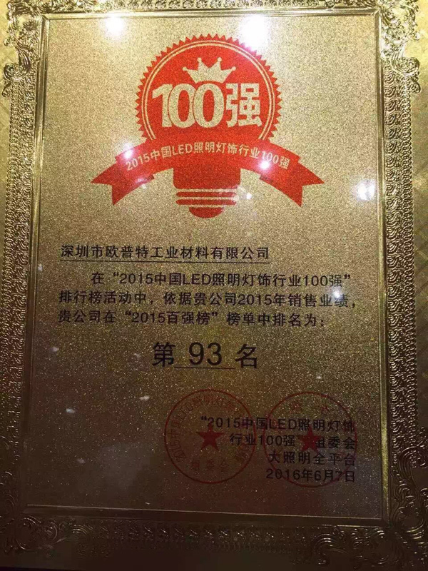 主題:歐普特榮獲“2015中國LED照明燈飾行業(yè)百強(qiáng)榜“第93名