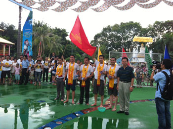 我們公司帥氣男隊(duì)熱情地參加了LED協(xié)會(huì)組織潑水節(jié)比賽并且得到冠軍。我們的美麗女員工不遑多讓也同大家一起參加了一年一度的潑水狂歡盛典。每張年輕的臉上寫(xiě)意著激情、歡樂(lè)、時(shí)尚、動(dòng)感。在這個(gè)熱情似火的夏日,愛(ài)shui就潑shui! 在一片水花四射中,歐普特的紅旗多么地張揚(yáng),歐普特年輕人人是那么地活潑可愛(ài)。余興節(jié)目是觀看民族村的高水平文藝晚會(huì)。一段悠揚(yáng)的葫蘆絲帶出那茂密竹林深處的歌聲,水一樣的傣家姑娘身著花色筒裙,頂著水果的姑娘、挑著水罐的女孩、撐著花傘的小仆哨和舉著羅傘的和尚、還有那在清清溪水旁起舞的孔雀 。。。