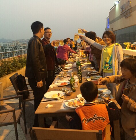 會議結束后,在徐徐海風中,在美麗望海八號露天燒烤場,我們盡情的品嘗名家大廚為我們精心準備的燒烤,喝著豐收后的喜酒,獨享這片深圳最美麗海邊山腰,感覺超贊。天色漸漸暗淡下來,遠遠望去,大海和山脈海山一色,渾然一體就像我們營銷中心大家庭,銷售部小伙子是雄偉的大山,商務部的美女們就是遼闊的大海,兩部門之間相互激勵,超越夢想。